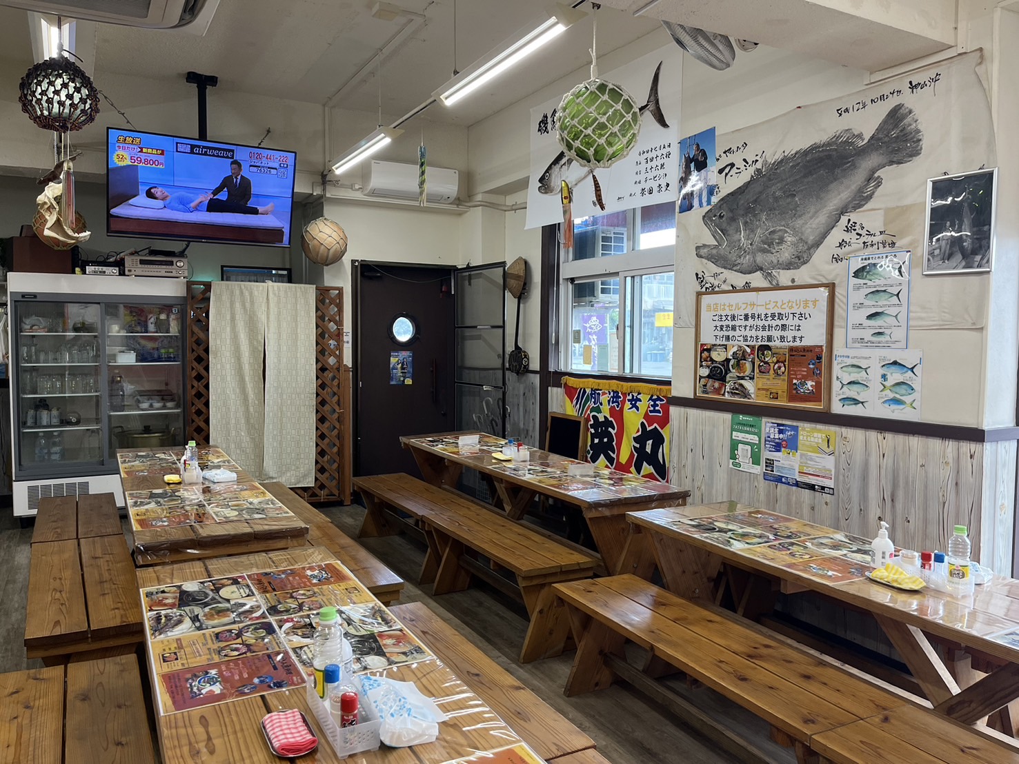 釣った魚はすぐ近くのショップ「海の恵み」で調理してくれます。徒歩約30秒。