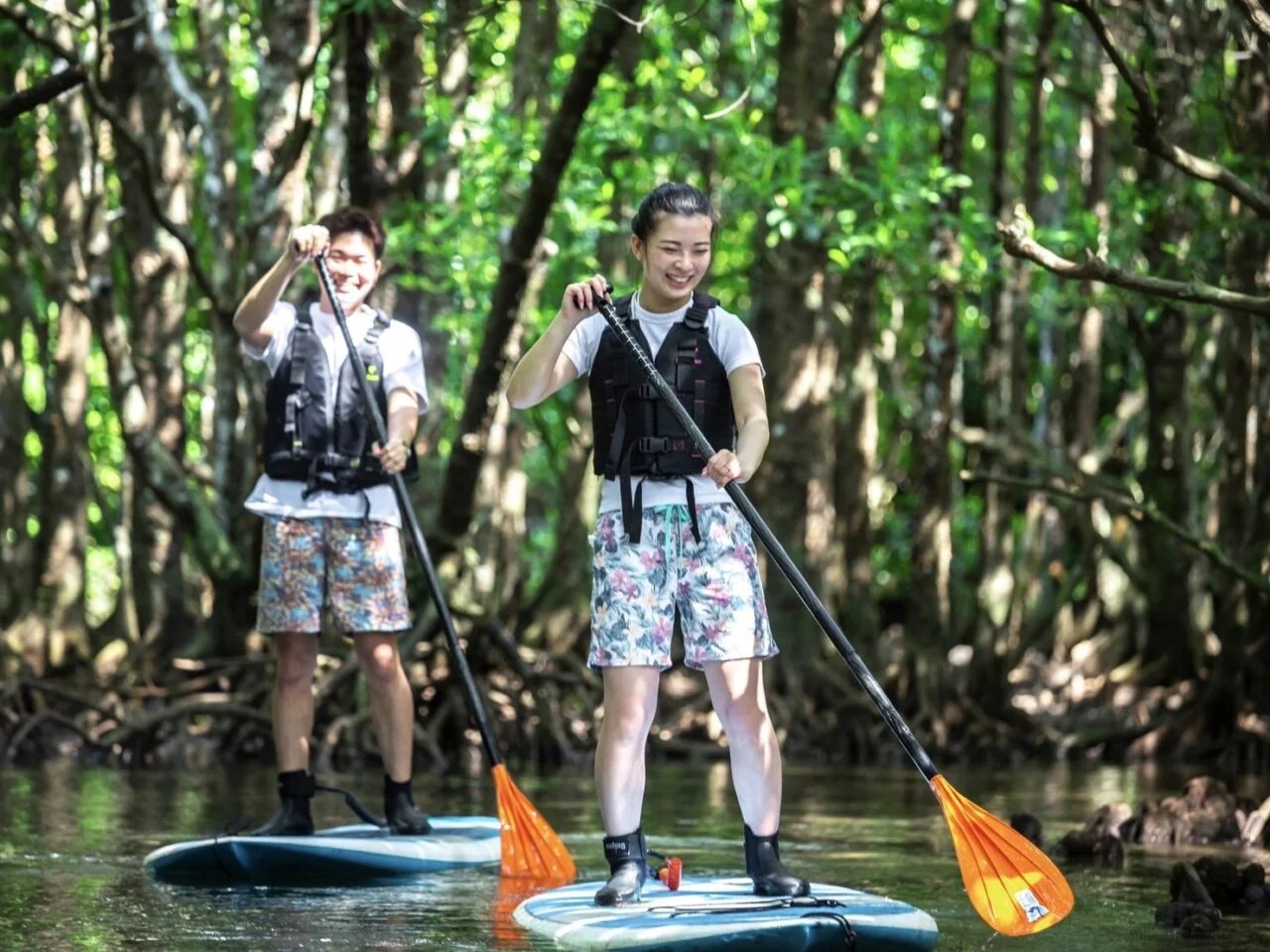 石垣島を代表する名スポット「幻の島」への上陸とシュノーケリング、そして国指定の天然記念物「宮良川」のマングローブ林でのSUP/カヌークルージングがセットになったプラン!