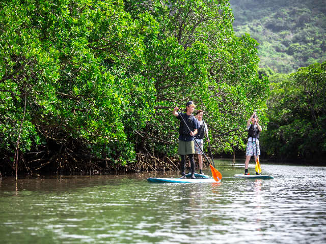 ミシュラン三ツ星の景勝地「川平湾」でのSUP/カヌー、そして国指定の天然記念物「宮良川」のマングローブ林でのSUP/カヌークルージングがセットになったプラン!