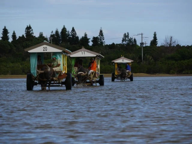 水牛車に揺られて由布島へ