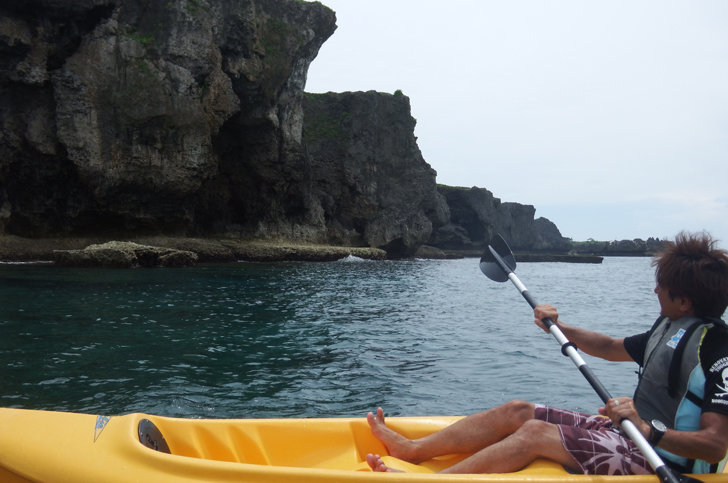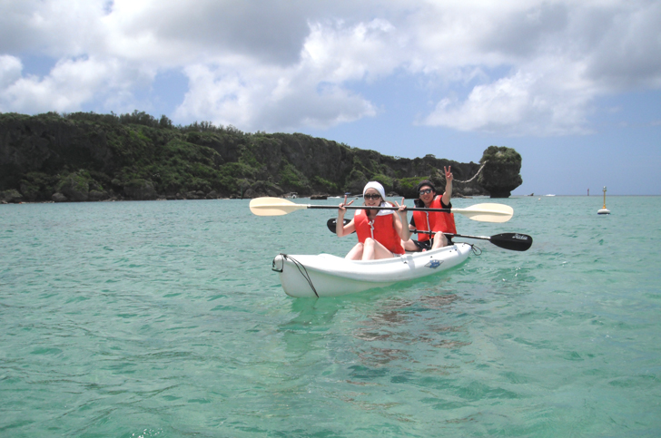万座毛の近くで海風を感じながらのんびりとカヤック体験が可能![]()