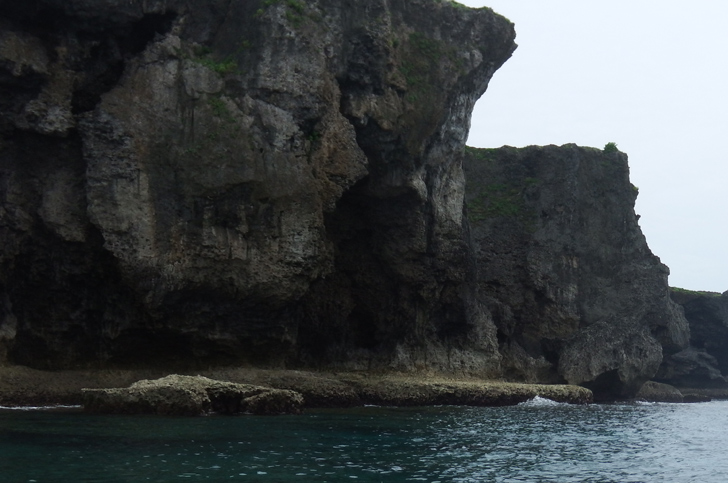 海から見上げる万座毛はすごい迫力![]()