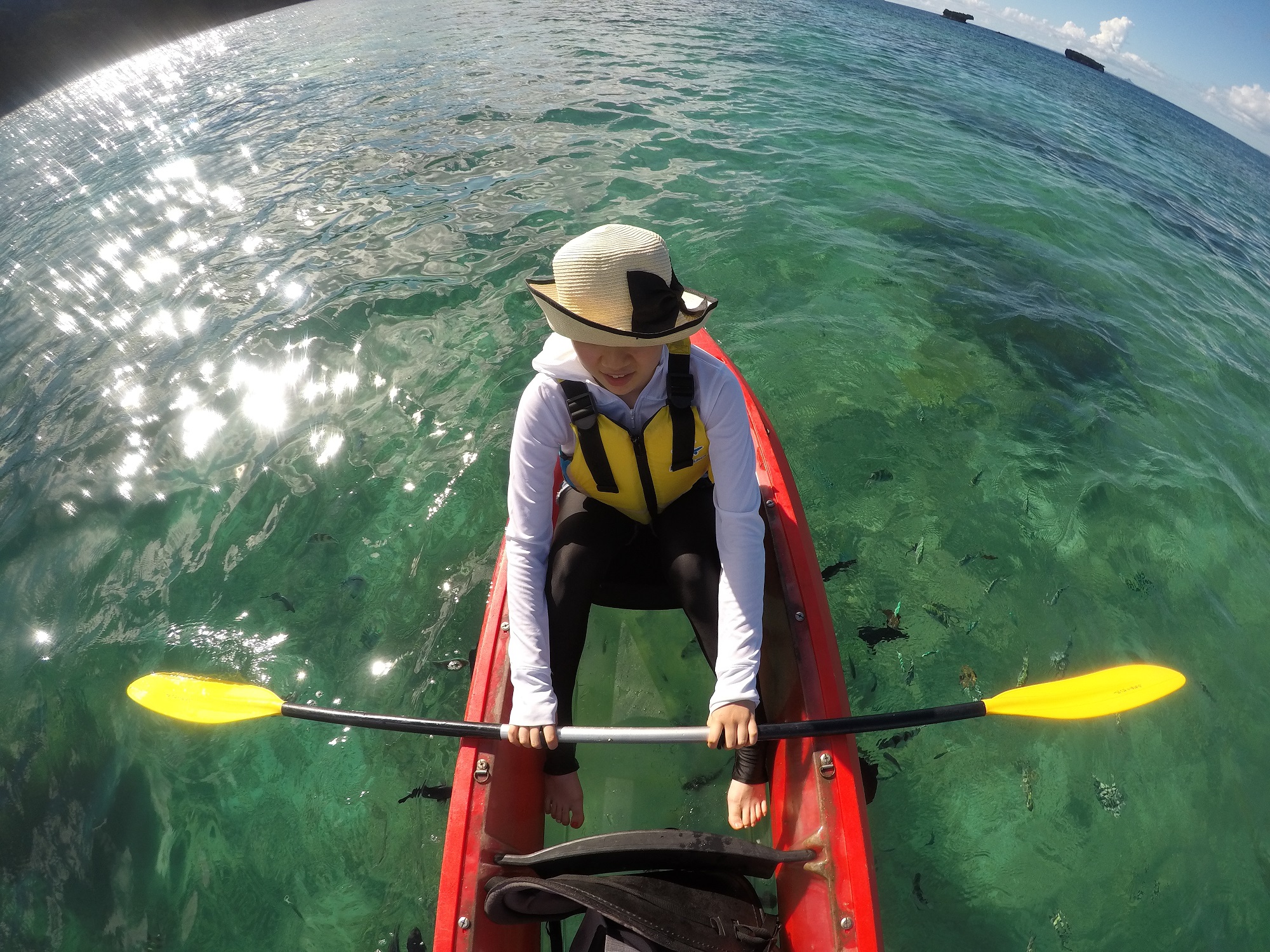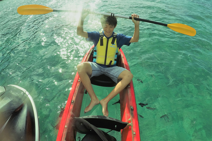 ビーチより出航・餌付け体験クリアカヤッククルージング