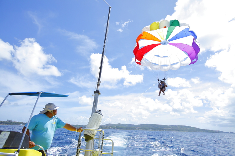 해양 스포츠 【북부출발】 츄라우미 수족관 근처, 세소코비치에서 즐기는 패러세일링¥7,000