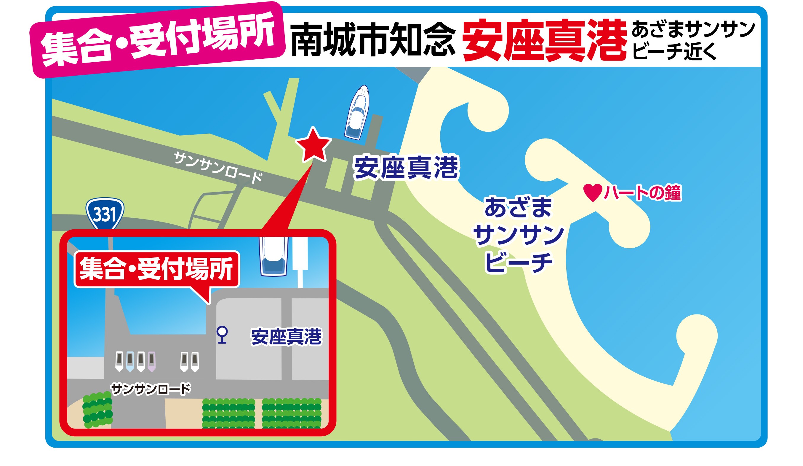 スケジュール 10:10 安座真港(切符売り場内売店)集合