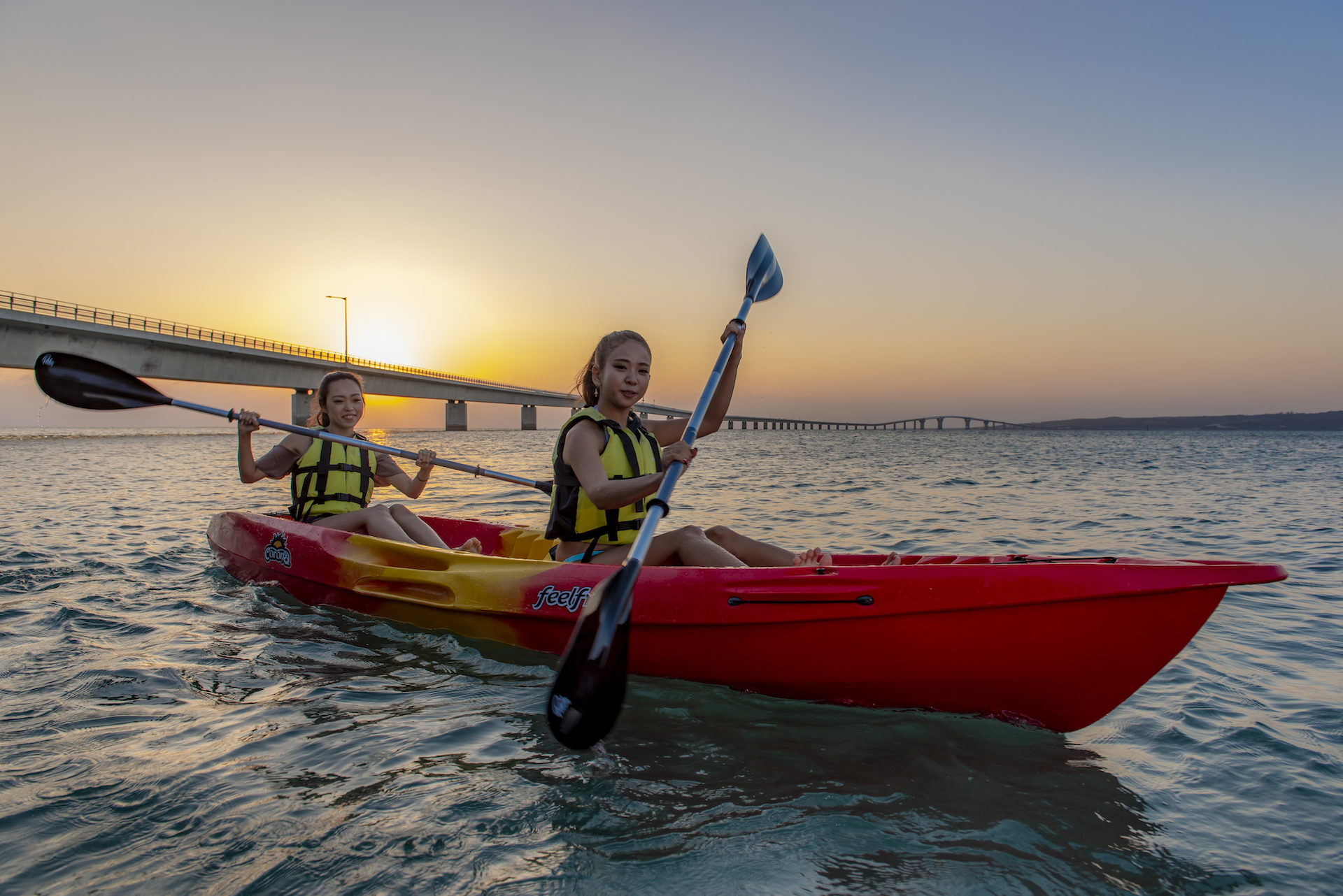 カヤックで間近から眺める伊良部大橋は迫力満点!大興奮すること間違いなし!※海況により変更となる場合もございます。