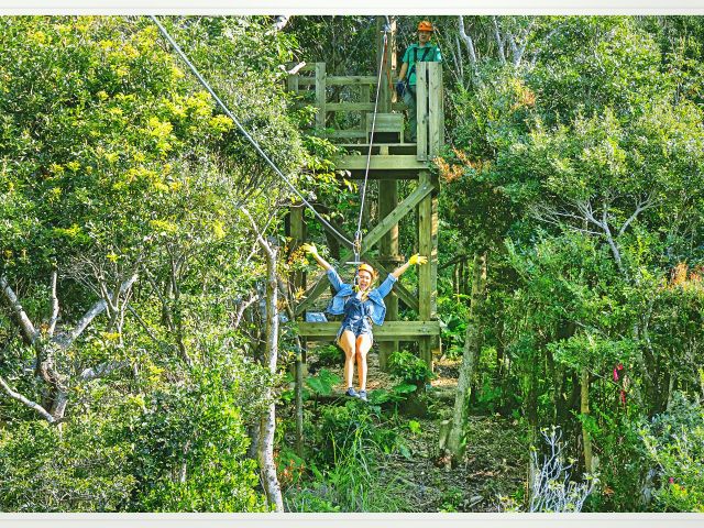 私有地内のやんばるの林間、そして上をZIPLINEで通り抜けます![]()