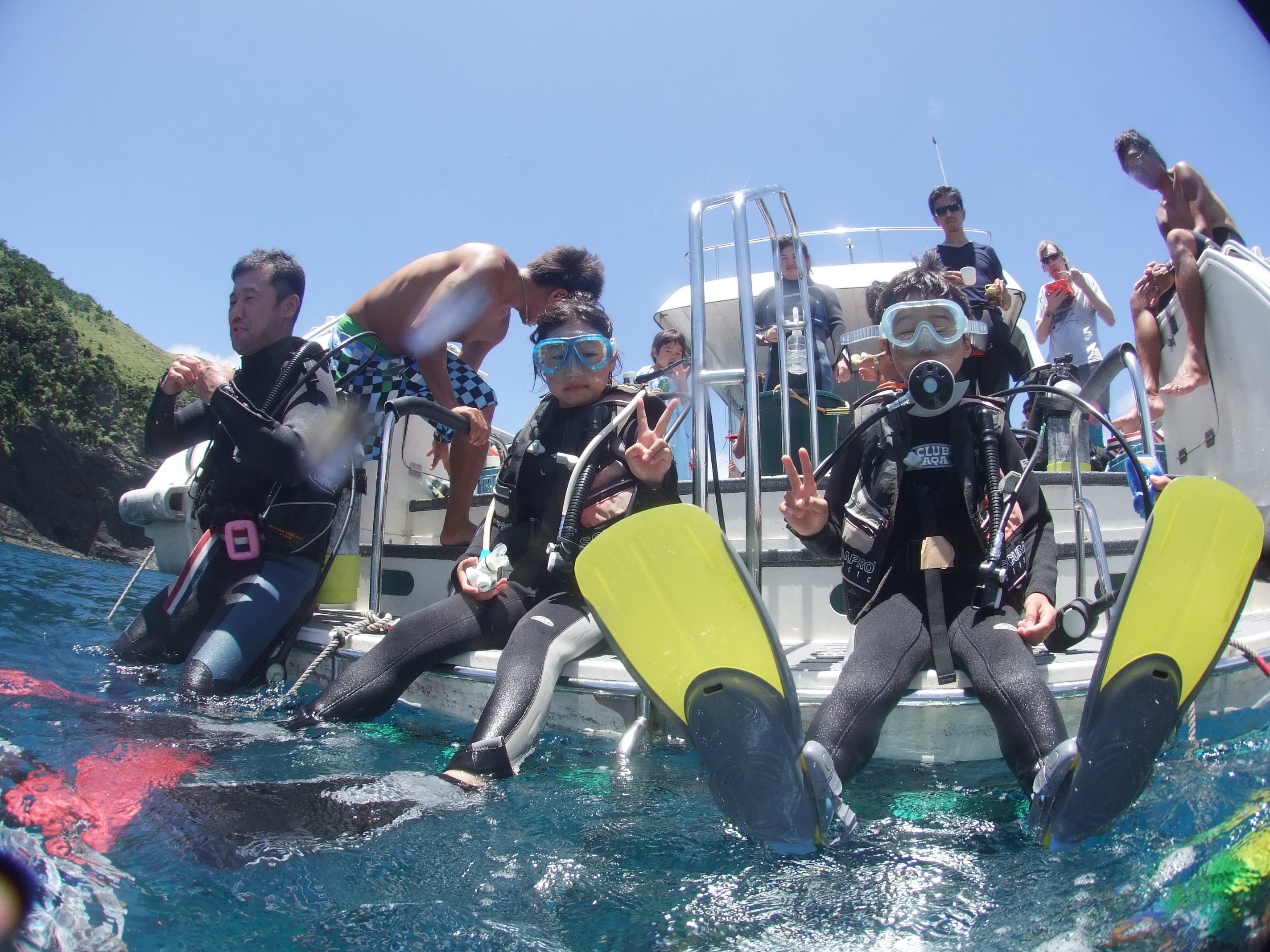 抵達慶良間群島第一定點。抵達後開始體驗潛水。結束後、前往第二定點。