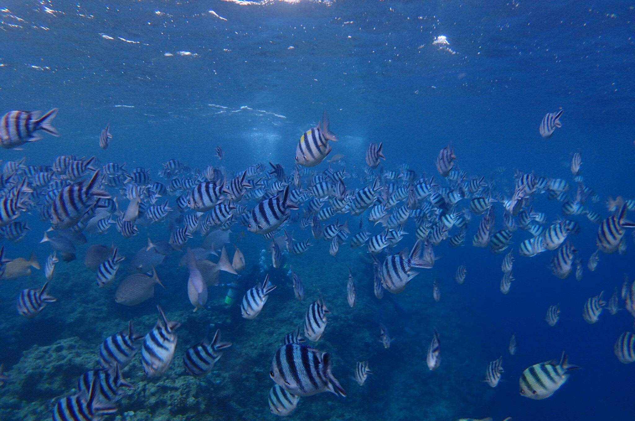 在飽覽完從水面反射至洞窟內的神秘藍光,沖繩版的青洞美景後,開始與魚兒互動的歡樂時光囉!![]()